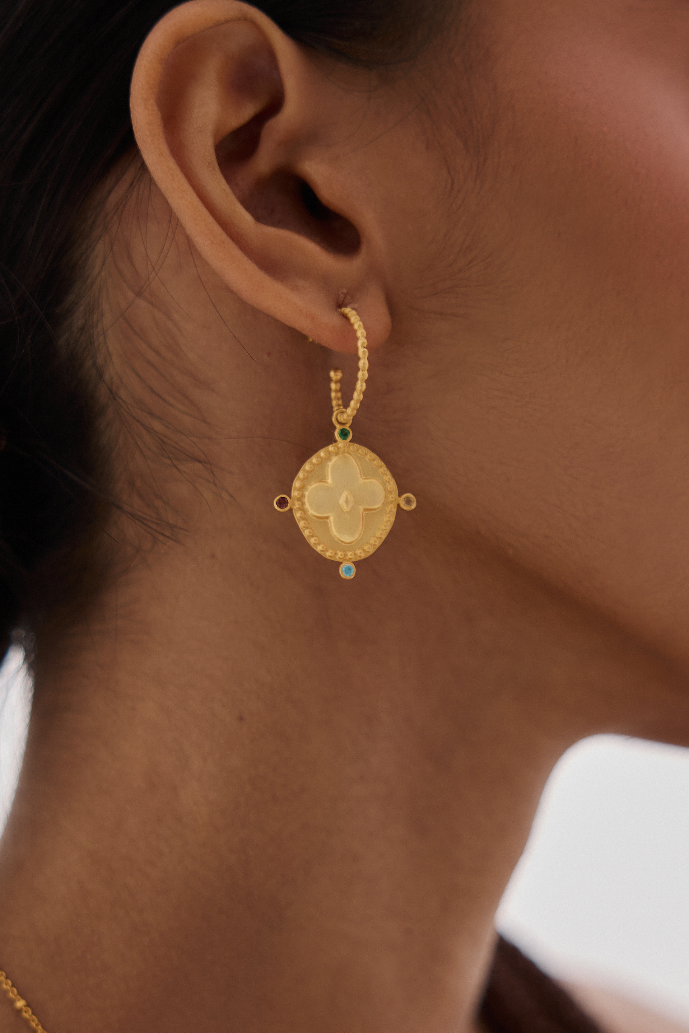 Our Clover Earrings are inspired by ancient talismans and feature our signature clover logo with four petals, representing our pillars of connection, craft, community and nostalgia.