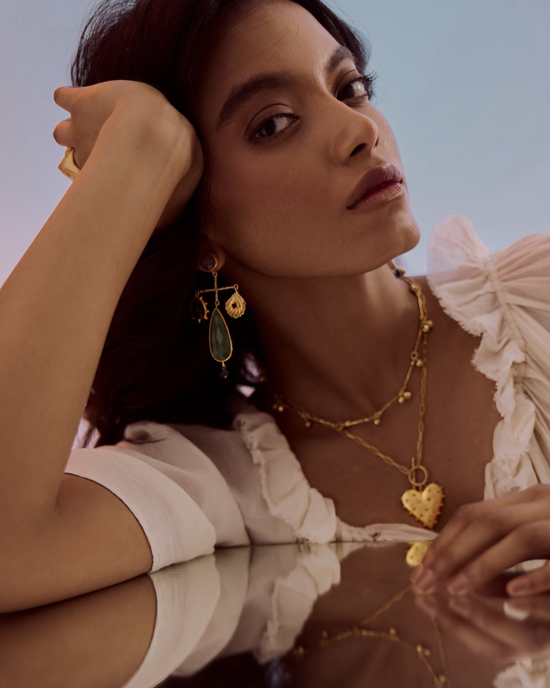 Each element evokes the spirit of travel and storytelling, inspired by the treasures of ancient coastlines and the energy of vibrant marketplaces. The asymmetrical composition reflects Lanamara’s belief in the beauty of imperfection.