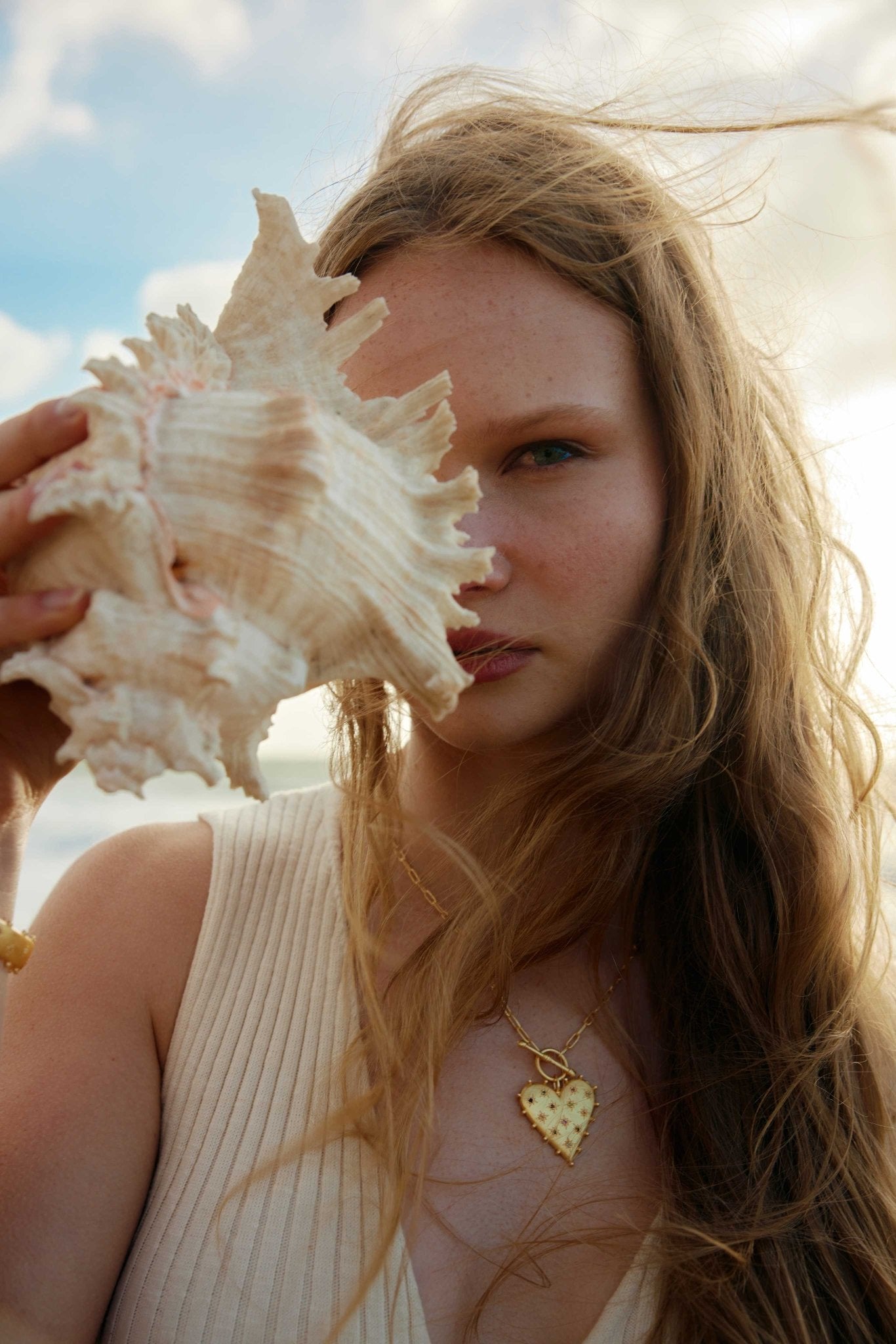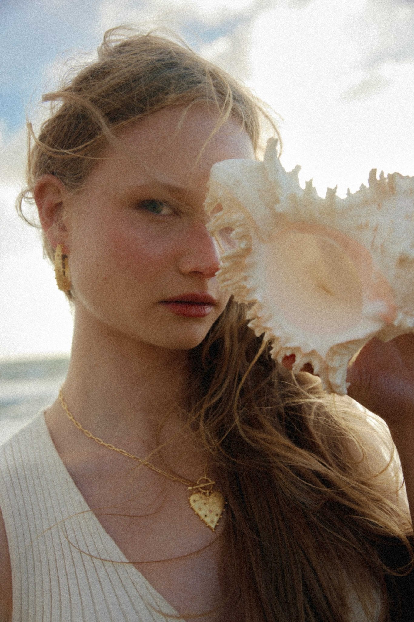 @catsanz wearing the Lanamara Heart Pendant Necklace 18k gold plated